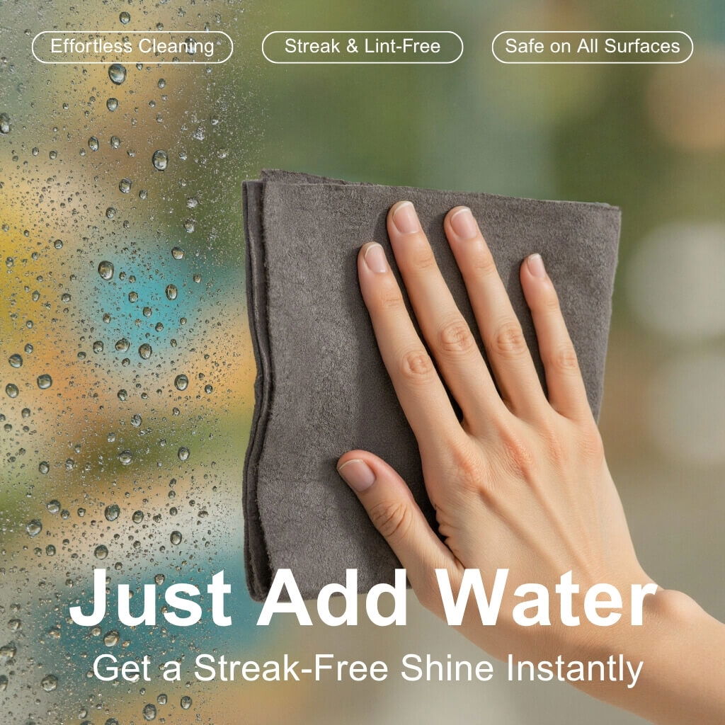 Highly absorbent, just add water, this cloth cleans every surface sparkling fresh, no detergent needed.